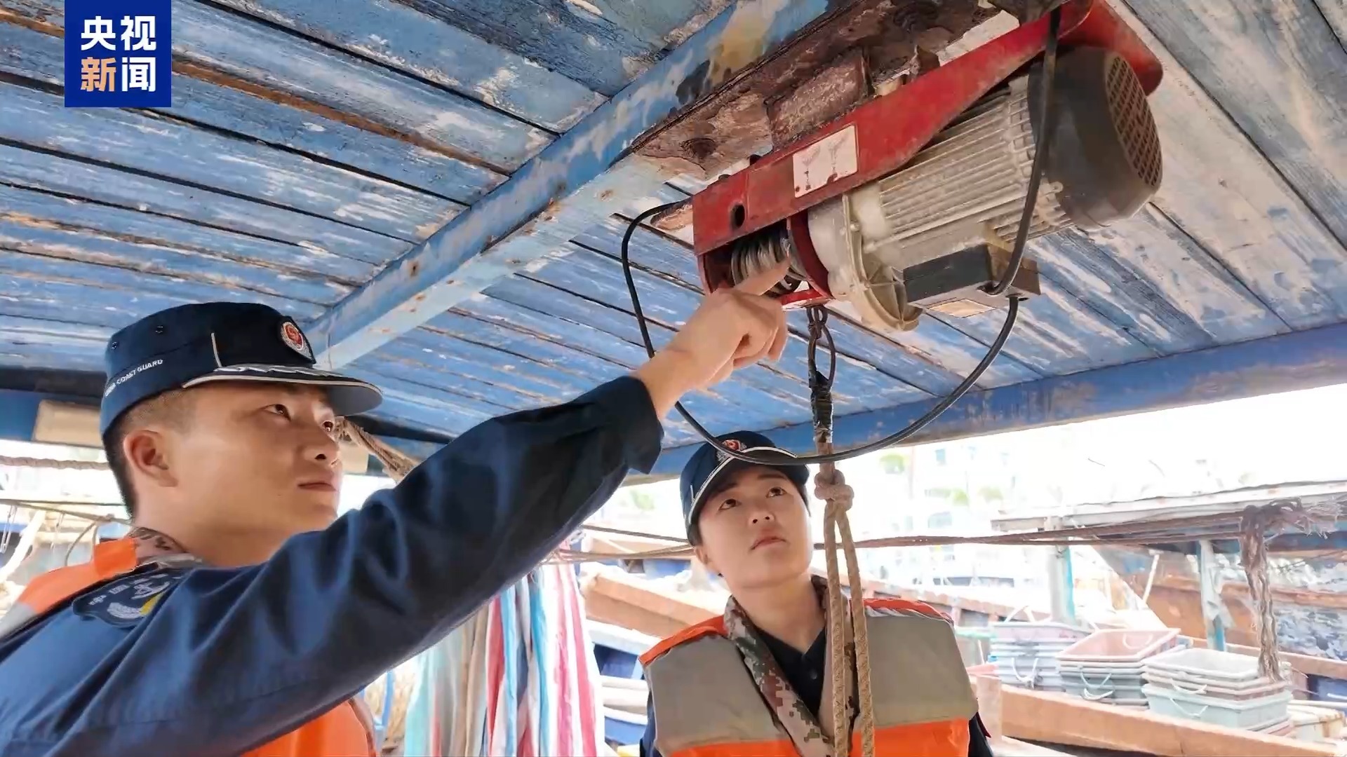 广东揭阳海警局执法员 陈淑曼:在出海作业前,一定要对作业设备做检查,尤其是起吊机、绞车等常用设备,作业前必须逐一检查。起吊机的钢丝绳是否有断丝、锈蚀,轴承是否固定牢靠、转动灵活,吊钩是否完好,卡扣是否固定;绞车的传动部位是不是正常,刹车系统是否灵敏。发现异常应当立马停止作业,避免设备故障引发意外。