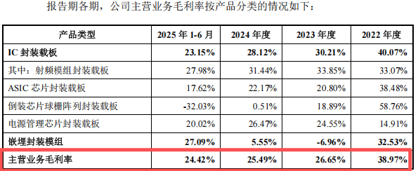 毛利率“塌方”的背后是产品价格的持续下行。公司核心产品IC封装载板的销售价格从2022年的2551.87元/片降至2025年上半年的1908.23元/片,累计跌幅达25%。