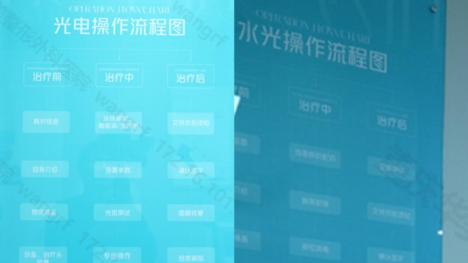 医治sop揭露,标准通明:重庆华美每间医治室墙上均有医治sop,术前—术中—术后严厉核对,履行不打扣头,求美者亲身依据标准流程监督,保证医治全程有据可依,揭露通明。